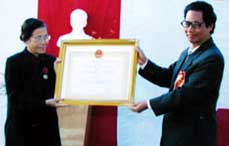Nữ tu Mai Thị Mậu nhận Huân chương Lao động.