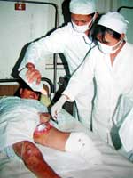 Các y bác sĩ trẻ là con em của bệnh nhân phong đang chăm sóc bệnh nhân. |