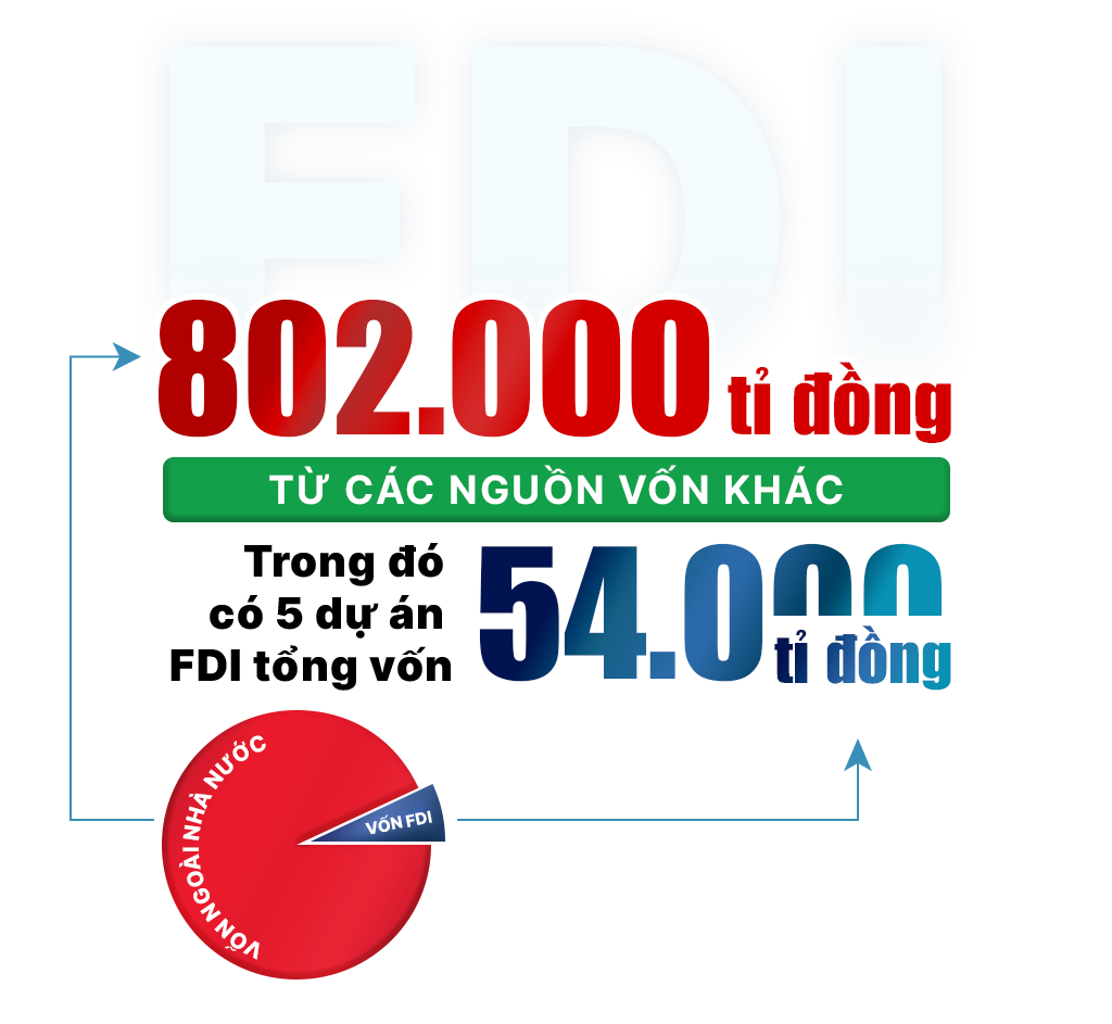 Đặc biệt, cơ cấu vốn đầu tư cho thấy sự thành công trong việc huy động các nguồn lực xã hội. Vốn nhà nước chiếm khoảng 37% (478.000 tỉ đồng cho 129 dự án), trong khi 63% còn lại (802.000 tỉ đồng cho 121 dự án) đến từ các nguồn vốn khác, chủ yếu là khu vực tư nhân.