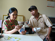 TS Nguyễn Thị Nhung xem mẫu thử do người dân đem đến chiều 17.7.2007 - ảnh: hải Nguyệt