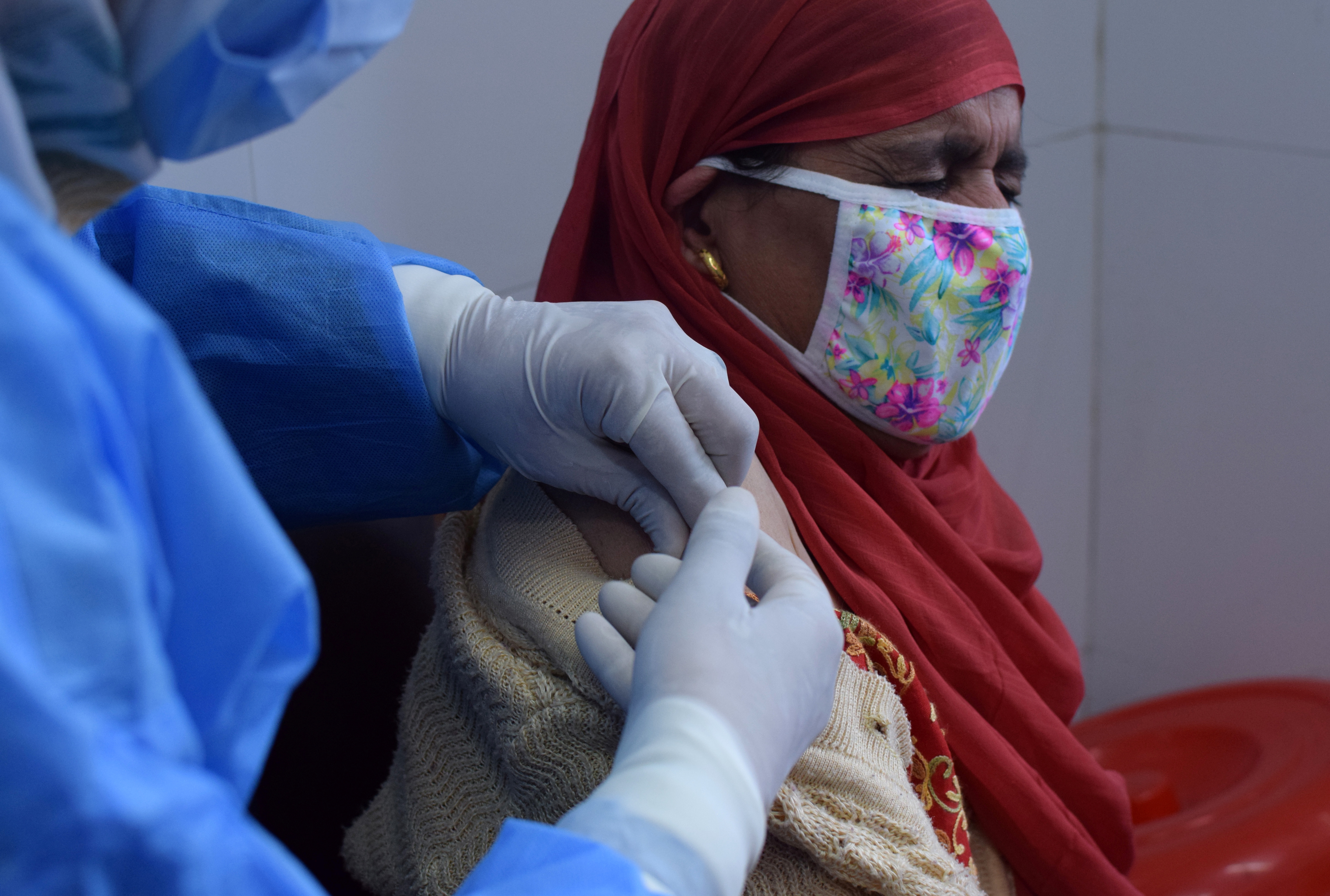 Một người phụ nữ được tiêm vắc xin ngừa Covid-19 Covishield do Viện Huyết thanh của Ấn Độ sản xuất tại thành phố Srinagar. Reuters |