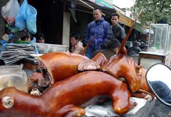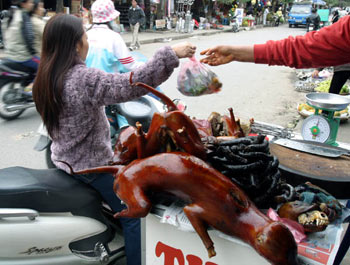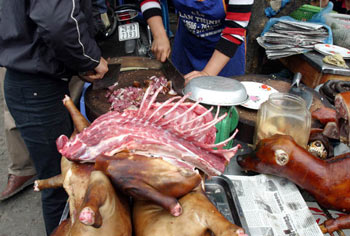 Thịt chó vàng hươm, bày ngồn ngộn cả chục con một lúc |