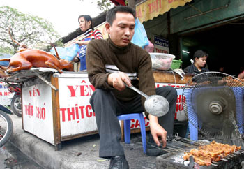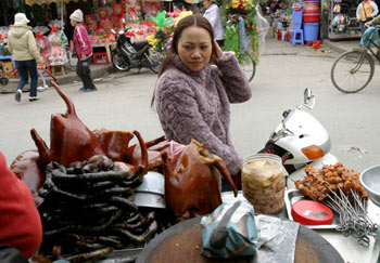 Thịt chó Hà Nội thì phải nói đến Nhật Tân, ở đấy có cả một liên hiệp các xí nghiệp thịt chó hoạt động tưng bừng cả gần hai chục năm nay.