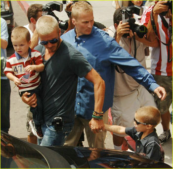 Romeo (phải) và Cruz theo bố. Cruz cầm trên tay lá cờ Mỹ