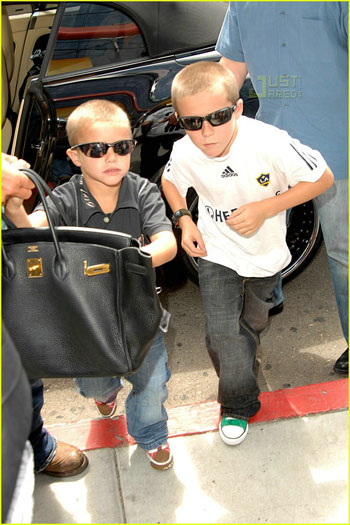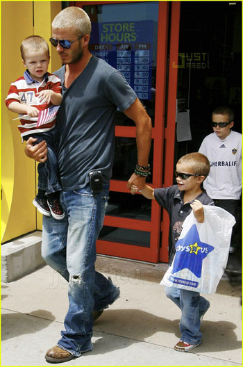 Cậu con trai lớn Brooklyn (phải) mặc chiếc áo của CLB LA Galaxy