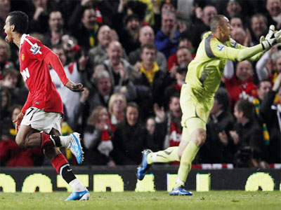 Phút 84, Nani té ngã gần khu vực 5,50 m của Tottenham sau pha tranh chấp với Kaboul và anh tưởng rằng M.U sẽ được hưởng phạt đền nên với tay ôm bóng. Tuy nhiên, trọng tài chính M. Clattenburg không thổi còi. Thủ môn H. Gomes của Tottenham ôm bóng, rồi đặt xuống chuẩn bị đá phạt lên vì tưởng trọng tài phạt Nani tội dùng tay chơi bóng. Tuy nhiên, thấy ông Clattenburg chẳng có dấu hiệu gì lạ thổi phạt, tiền vệ chạy cánh người Bồ Đào Nha của M.U chạy tới bóng rồi dứt điểm. Thủ môn Gomes đổ người nhưng quá muộn.