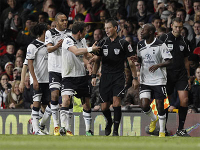HLV H. Redknapp, các cầu thủ và CĐV Tottenham giờ chỉ biết trách số phận đen đủi, nhất là khi đối mặt với trọng tài Clattenburg tại sân Old Trafford. Năm năm trước, tiền vệ Pedro Mendes của Tottenham sút bóng, thủ môn R. Carroll bắt vuột, bóng lăn vào khung thành qua vạch vôi gần 1 m nhưng tổ trọng tài của ông Clattenburg vẫn không công nhận bàn thắng. Hai năm trước, CLB thành London này cũng bị quả phạt đền đầy tranh cãi, khiến họ thua ngược 2-5 sau khi dẫn 2-0. Rạng sáng 31-10, trận đấu tồi tệ của Tottenham khép lại với chấn thương của tiền vệ Van der Vaart, người nhiều khả năng không kịp hồi phục dự trận vòng bảng Champions League tiếp Inter Milan vào giữa tuần.