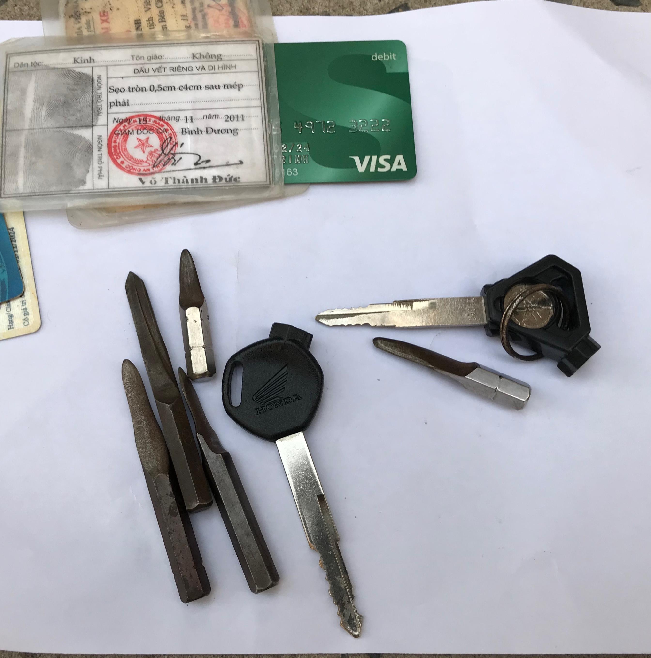 Đoản bẻ khóa xe được trang bị để trộm cắp tài sản Ảnh: Dương Phan |
