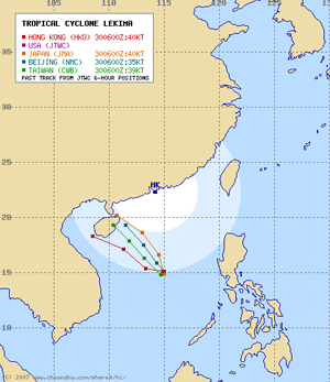 Bão Lekima hình thành trên biển Đông VN. Sức gió 30 hải lý/h, tầm hoạt động 850km, là bão vòi rồng rất lớn (a very large typhoon), có nhiều tầng gió mạnh ở trung tâm. Dự báo bão đi lên phía bắc Trung quốc. Vì vậy, cần chú ý diễn tiến của bão.