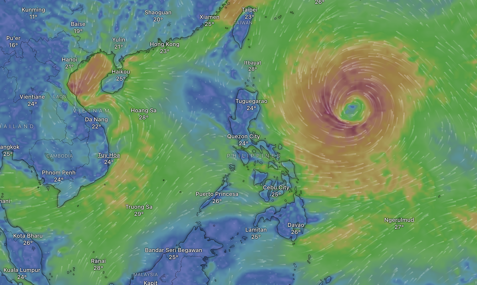 Vị trí của bão Kongrey ở vùng biển ngoài khơi Philippines
