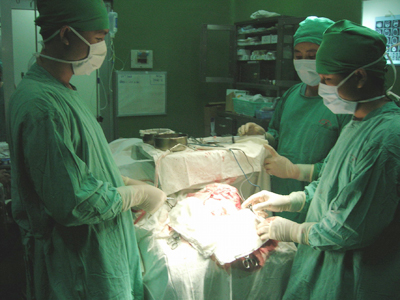 Hồi 17h30 vẫn còn mưa to, gió giật. Toàn thị xã Bến Tre chìm trong bóng tối ngoại trừ một số cơ quan ứng trực như bệnh viện, bưu điện, đài phát thanh truyền hình... Tấm hình này được phóng viên Nguyễn Khoa Chiến gửi đi từ Bưu điện tỉnh Bến Tre với chú thích: Các bác sĩ BV Bến Tre đang mổ cấp cứu cho nạn nhân NGuyễn Văn Sơn, 43 tuổi (ở xã Bình Tây huyện Ba Tri) bị dập não, bán cầu trái, khi ngôi nhà ngói bị bão giật sập, đè lên.