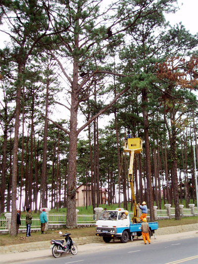 Ngay sau cuộc họp khẩn cấp Công ty Quản lý công trình Đà Lạt cho chặt tỉa ngay những cây thông có nguy cơ ngã đổ |