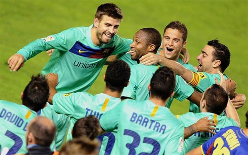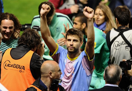 Các cầu thủ Barca ăn mừng sau khi trận đấu kết thúc