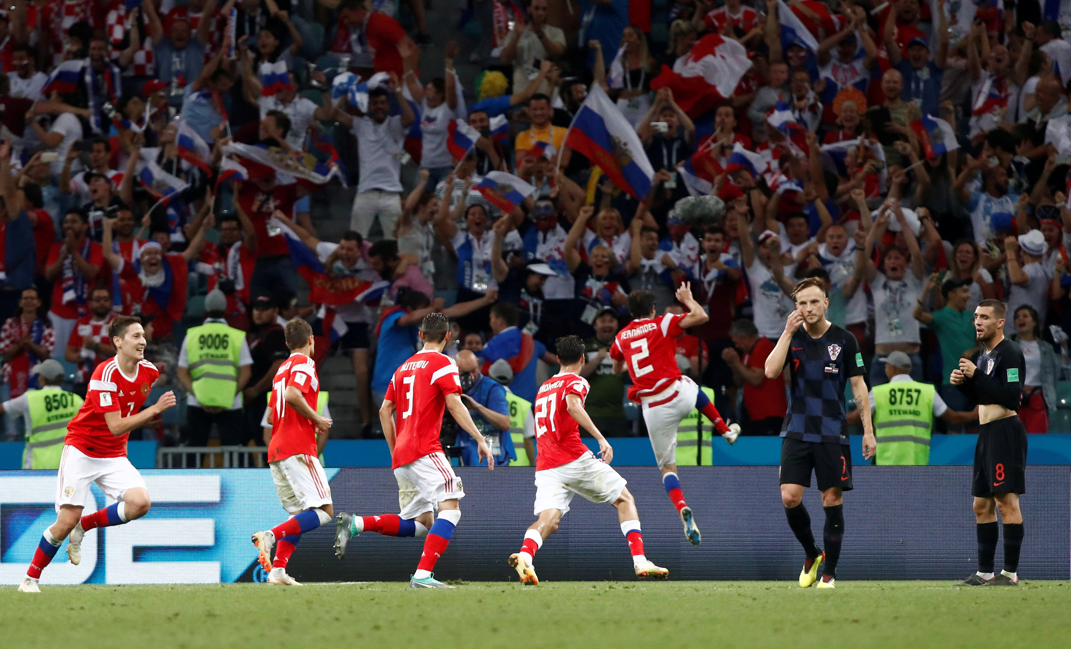 Tại sân vận động Fisht và rộng khắp trên toàn lãnh thổ liên bang Nga, nỗi buồn thất bại nhanh chóng bị hòa tan bởi những tiếng đồng ca “Russia, Russia” của các CĐV. Họ có quyền tự hào về những gì mà các người hùng của mình đã tạo nên ở giải đấu lịch sử này.