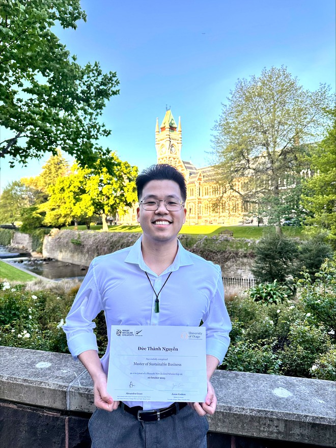 Đức Thành hiện theo học chương trình Master of Sustainable Business tại ĐH Otago - chương trình tiên phong tại New Zealand đào tạo về kinh doanh bền vững. Với xuất thân từ ngành Tài chính - Ngân hàng tại Đại học Ngoại thương, Thành từng làm tham gia nhiều dự án hỗ trợ doanh nghiệp chuyển đổi xanh.