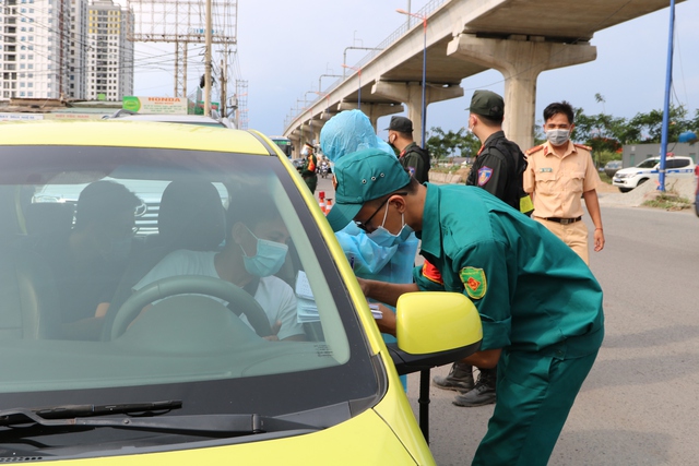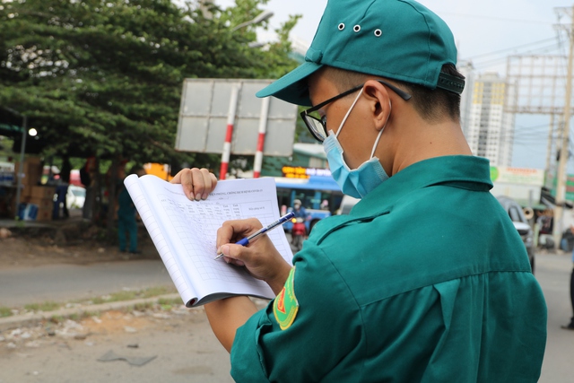 Có mặt tại tại chốt kiểm soát ở Quốc lộ 1A (trước khu vực Trường ĐH An ninh nhân dân, thuộc khu phố 6, P.Linh Trung, TP. Thủ Đức), Nguyễn Văn Châu Bình, dân quân tự vệ ngụ tại P.Bình Thọ, TP.Thủ Đức, chia sẻ: “Nhiệm vụ của tôi là chốt chặn các xe, kiểm tra nhiệt độ, ghi tên các phương tiệt tất cả các loại xe trước khi vào thành phố”.