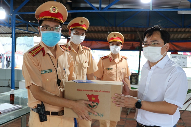 Bí thư thứ nhất T.Ư Đoàn thăm các lực lượng phòng chống dịch Covid-19 tại chốt kiểm soát ở Quốc lộ 1A (trước khu vực Trường ĐH An ninh nhân dân, thuộc khu phố 6, P.Linh Trung, TP. Thủ Đức) Thanh Vương