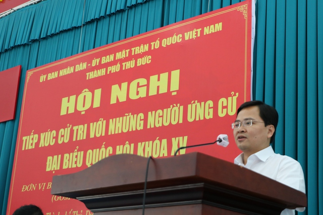 Bí thư thứ nhất T.Ư Đoàn Nguyễn Anh Tuấn chia sẻ với cử tri tại Hội nghị tiếp xúc cử tri trong chương trình vận động ứng cử đại biểu Quốc hội khóa XV, nhiệm kỳ 2021 -2026 vào ngày 11.5 ở TP.Thủ Đức, TP.HCM Thanh Vương