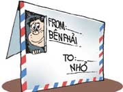 * Nhỏ mới dọn về ở kế nhà em. Nhà nhỏ nằm ở bên trái. Em định viết thư tỏ tình với nhỏ nhưng không ghi tên thật mà ghi "người ở bên phải". Theo anh, tỏ tình theo kiểu đó có gì trở ngại không? (Trần Hoàng Sơn, Nha Trang)