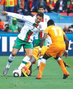 Trong khi đó, Bờ Biển Ngà dù hơn 60 phút đầu thiếu Drogba nhưng vẫn thi đấu rất nhịp nhàng, tổ chức đấu pháp chặt chẽ và từng bước đẩy đội hình BĐN lùi sâu rồi kiểm soát thế trận bằng những pha dàn xếp khá đa dạng và gắn bó. Chính lối chơi quyết liệt này của đại diện châu Phi làm cho hàng thủ BĐN do Carvalho chỉ huy liên tục vất vả. Kalou, Yaya Toure, Eboue, Dindan luôn xông xáo và khuấy đảo làm lúng túng đối phương. Nhưng người nổi bật nhất chính là tiền đạo Garvinho đang chơi cho CLB Lille (Pháp) liên tục tạo sóng gió. Nhưng điều mà Bờ Biển Ngà không làm được chính là bàn thắng. Ngay cả khi Drgoba được tung vào ở 20 phút chót, tạo được một vài cơ hội ngon ăn nhưng đàn voi rừng vẫn không cụ thể hóa được thành bàn thắng.