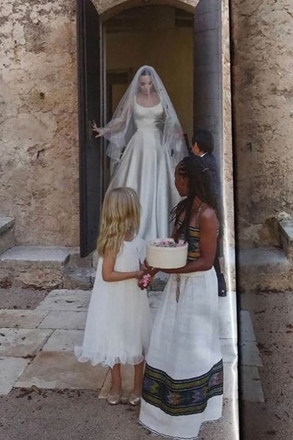 Những bức ảnh cưới trong một nhà thờ nhỏ gần dinh thự của họ tại Chateau Miraval (Pháp) hôm 23.8 được hé lộ cho thấy tình cảm gia đình thắm thiết của họ.