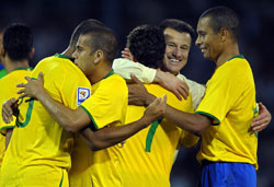 Hiệp hai, Brazil chơi hoàn toàn đúng đẳng cấp của đội hàng đầu thế giới. Bàn thắng thứ hai sau pha phối hợp của Kaka, Grafite, Robinho nhịp nhàng như một điệu samba, bao gồm 2 cú đánh gót của Kaka và Grafite cùng với cú dứt điểm vòng cánh cung đẹp mắt của Robinho.