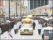 ![]() Trung tâm thủ đô Bandar Seri Begawan được trang hoàng lộng lẫy cho lể cưới - Ảnh: AP |