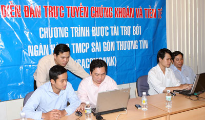 Với mong muốn giúp đọc giả có thêm thông tin về xu hướng phát triển của thị trường chứng khoán Việt Nam trong năm 2008, báo Thanh Niên đã tổ chức buổi giao lưu trực tuyến lúc 14h trưa nay (31/12) với chủ đề “Bức tranh toàn cảnh về thị trường chứng khoán Việt Nam năm 2008” có sự tham gia của hai khách mời gồm Thạc sĩ Đinh Thế Hiển - Giám đốc Viện Nghiên cứu Tin học và Kinh tế ứng dụng và ông Trần Hoài Phương - quyền Tổng giám đốc công ty chứng khoán Gia Quyền. Chương trình được sự tài trợ của Ngân hàng Sài Gòn Thương Tín (Sacombank). Dưới đây là toàn bộ nội dung buổi giao lưu trực tuyến: