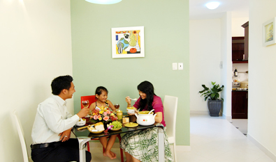 “Lời giải” đã có được từ dự án Hoàng Kim. Bạn sẽ có nhiều thời gian hơn để vui đùa cùng con cái trong khi chờ đợi bữa ăn tối ấm cúng với đầy đủ các thành viên trong gia đình. Sau bữa tối, trong phòng khách rộng rãi và thoáng mát, bạn cùng gia đình xem phim hay dạy con cái làm bài tập ở nhà hoặc thảnh thơi ngắm nhìn khung cảnh thanh bình và không kém phần rực rỡ, lãng mạn của khu Nam Sài Gòn về đêm.Thấu hiểu những điều tưởng chừng như giản dị ấy, chủ đầu tư K.T.T đã nhanh chóng giới thiệu căn hộ Hoàng Kim đến với thị trường và nhận được những phản hồi khá tốt từ phía khách hàng.