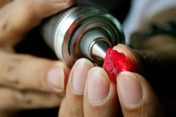 Vật bất ly thân với người đi chợ đá quý là một chiếc đèn pin được lắp một loại bóng đèn đặc biệt để soi kiểm tra đá, mà theo chủ một sạp hàng tại chợ, có giá hơn nửa triệu đồng.