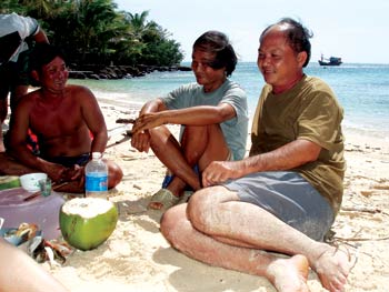Nguyễn Thanh Bá, thuyền trưởng tàu Quỳnh Thanh thông thạo vùng biển Kiên Giang trong lòng bàn tay, nói tiếng một: "Chị muốn ghé đảo nào". "Đảo nào càng ít người càng hay". "Nè, tui chỉ cho nghen. Hòn Thơm có độ 200 nhà, Hòn Dõi đằng sau đó thì độ 20 nhà, còn chạy độ 1 tiếng đồng hồ ra Hòn Mây Rút Trong gặp 1 nhà, tạt qua Hòn Mây Rút Ngoài cũng có một nhà nữa. Mấy cha nội này hổng biết có… bị gì không mà ở ngoải một mình 5-6 chục năm nay hổng thấy chán".