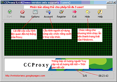 1. Giao diện của CCProxy hết sức đơn giản và dễ sử dụng, không yêu cầu người sử dụng quá am hiểu về kỹ thuật máy tính. Với Proxy Server, tất cả mọi người trong mạng LAN đều có thể kết nối đồng thời vào Internet với một tài khoản Internet trên một đường truyền Internet.