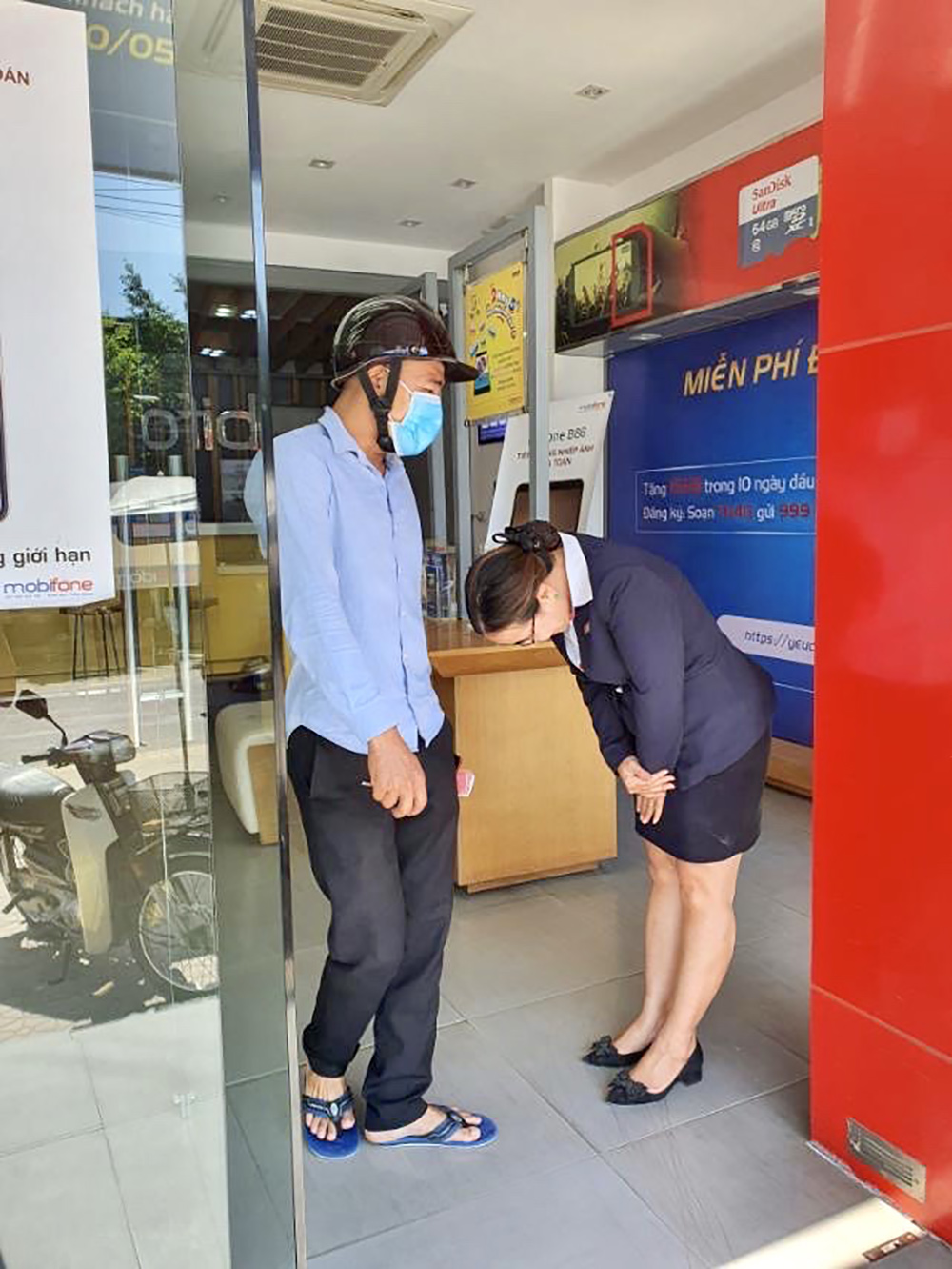 Vào mỗi thứ 4 hằng tuần, mỗi khách hàng đến giao dịch tại các cửa hàng MobiFone thuộc Công ty Dịch vụ MobiFone Khu vực 3 đều được cảm ơn và cúi chào trân trọng từ chính cửa hàng trưởng. Lời cảm ơn xuất phát từ sự chân thành và cũng là thái độ chuyên nghiệp khi làm dịch vụ.