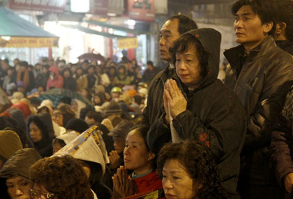 Những người không len vào được bên trong, phải đứng từ xa vái vọng