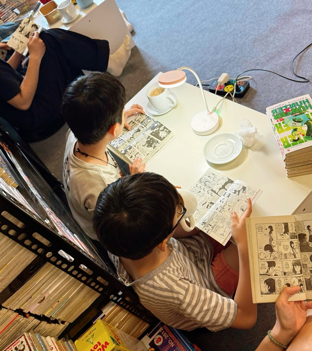 Tiệm trà truyện tranh không chỉ là nơi để thế hệ 8X, 9X tìm về tuổi thơ mà còn là địa điểm để các bạn nhỏ thỏa sức thưởng thức những bộ truyện thú vị