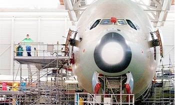 | A380 trong hangar ráp các bộ phận tại Toulouse (Pháp) |