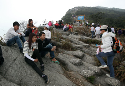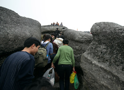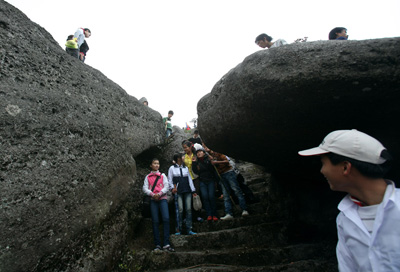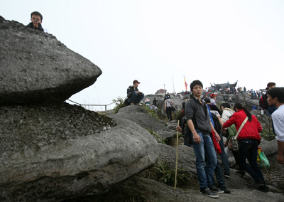 Tuy nhiên, chặng đường từ tượng An Kỳ Sinh lên đỉnh núi là một hành trình khó khăn với nhiều dốc đá cao.