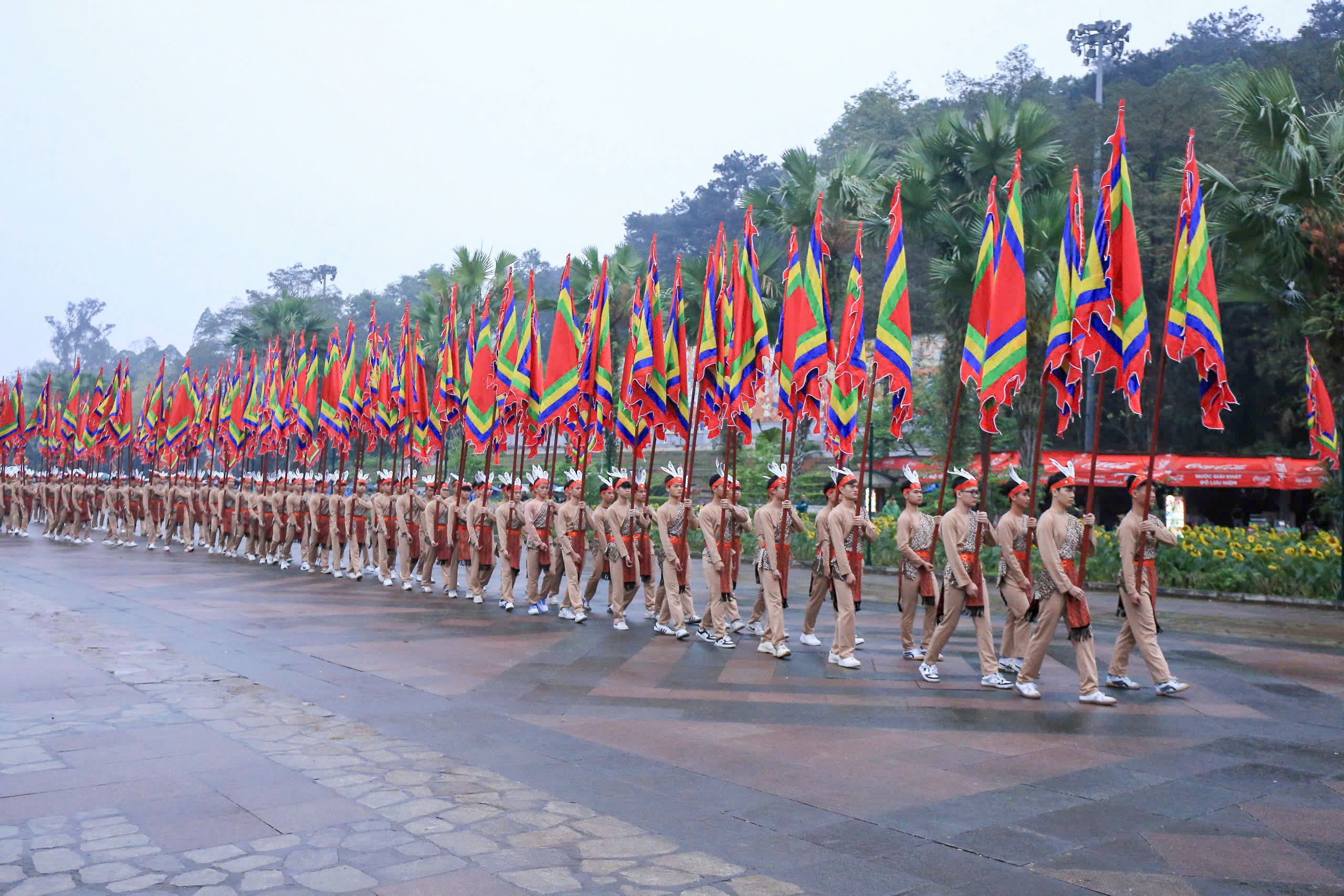 Sau phần đọc chúc văn, Chủ tịch nước Lương Cường cùng các lãnh đạo Ðảng, Nhà nước, các cơ quan T.Ư, lãnh đạo tỉnh Phú Thọ, tỉnh Vĩnh Phúc vào Thượng cung dâng hương, hoa, lễ vật tri ân, tưởng nhớ công đức các Vua Hùng và các bậc tiền nhân.