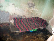 Căn nhà mặt tiền đường Quang Trung, thuộc tổ 8, phường Nguyễn Nghiêm, TP Quảng Ngãi nhìn từ bên ngoài khá kiên cố, cao rộng hàng trăm mét vuông. Tưởng như bên trong chẳng có điều gì uẩn khúc, nhưng khi bước lên tầng 2, chứng kiến những điều hiện ra trước mắt, không ai không khỏi xót xa. Anh Minh bị nhốt trong một căn phòng khoảng 6 mét vuông. Có 2 tấm gỗ cũ kê sát nhau cách mặt nền xi măng ẩm ướt, đầy tàn thuốc chừng 1 gang tay là chỗ ngủ của anh Minh. Kế bên có một cái bồn làm nơi đi vệ sinh. Không có gối, không có áo quần, không có quạt, nói chung là không có bất kỳ một vật dụng sinh hoạt gì ngoài một tấm chăn ngả màu cũ nát, mấy cái tô và ly nhựa. Chỉ có duy nhất một lối cửa hẹp để vào phòng nhưng đã bị phong tỏa bởi 1 tấm cửa gỗ, 1 tấm lưới sắt và 2 ổ khóa rất chắc chắn.