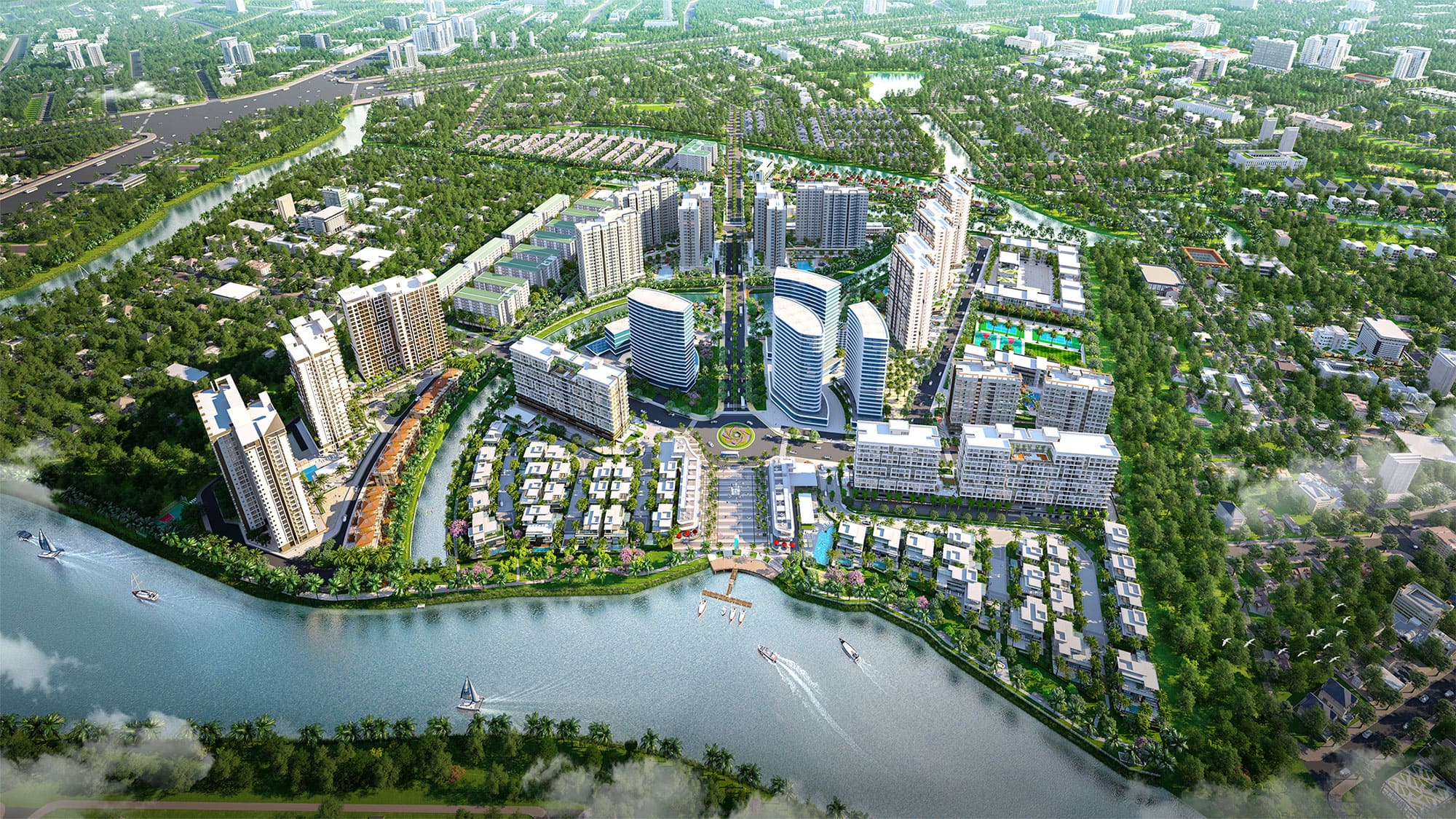 Đồng thời chúng tôi muốn tạo khả năng liên kết thuận tiện, bao gồm kết nối liền mạch liên vùng và ngoại khu. Các khu đô thị đều nằm ở các tâm điểm kết nối vùng. Hạ tầng nội khu, hệ thống tiện ích, hệ thống xe bus liên vùng cũng được quy hoạch đồng bộ, đảm bảo cư dân có thể tiếp cận siêu thị, trường học, bến xe bus... trong 5 - 15 phút đi bộ, đạp xe. Chúng tôi luôn muốn gia tăng chất lượng cuộc sống cộng đồng.