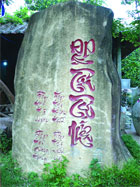 Tảng đá khắc thư pháp tại Hoàng Hoa Thôn. Ảnh: Nguyễn Khanh |