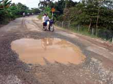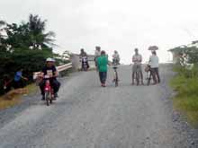 Còn ở các tỉnh thành khác, người dân liên tục phản ảnh về tình trạng tệ hại của nhiều con đường, kể cả quốc lộ, đường tỉnh lẫn đường huyện đường xã. Cụ thể: Quốc lộ 57 đoạn từ Vĩnh Long đi Bến Tre hiện đã bị hư hỏng nặng; khi trời mưa các ổ gà, ổ voi bị nước che lấp làm xe cộ qua lại thường bị sụp té (ảnh 5). Ngoài ra, cũng trên đoạn quốc lộ này, phía Vĩnh Long có hai cây cầu đã thông xe từ năm 2005 đến nay nhưng đơn vị thi công vẫn chưa tráng nhựa ở hai đầu mố cầu vì thế vào trời mưa xe 2 bánh qua lại bị té liên miên, trời nắng thì bụi bay mịt mù (ảnh 6).