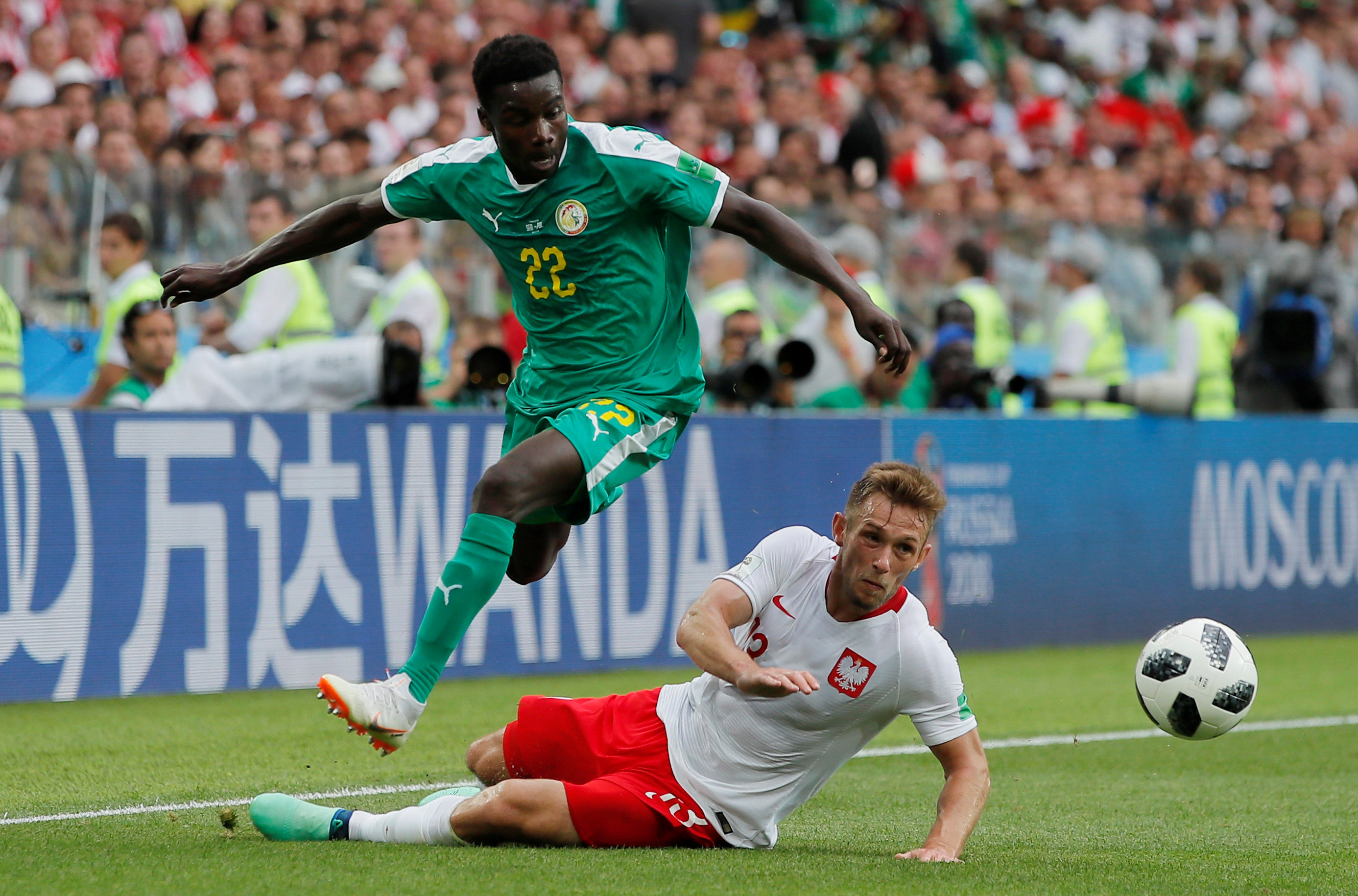 Bằng lối chơi bóng đầy sức mạnh, tốc độ, các cầu thủ đến từ châu Phi Senegal vượt qua Ba Lan với tỷ số 2-1 ở trận ra quân bảng H diễn ra đêm 19.6 trên sân Spartak (Nga).