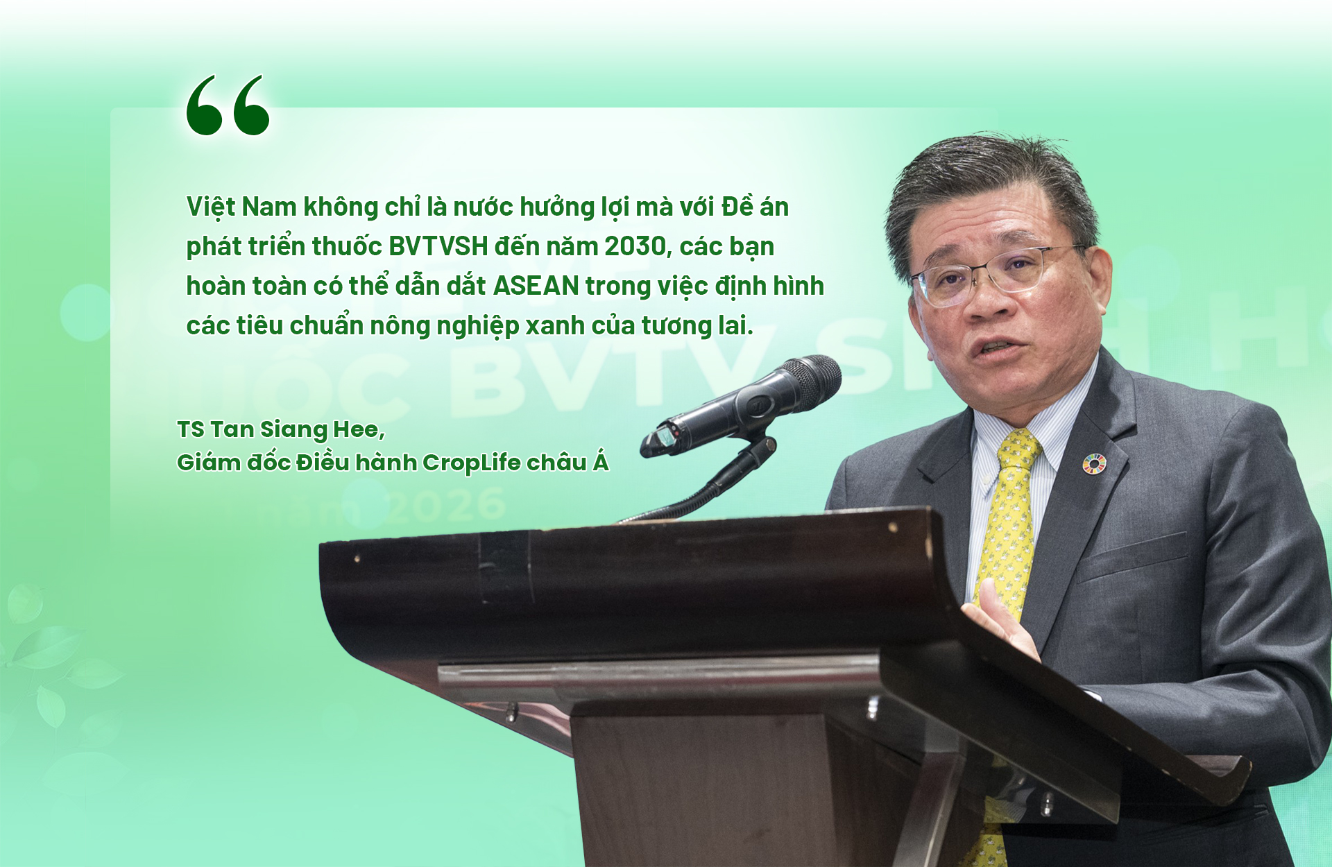 Khi ASEAN có một hệ thống đăng ký thống nhất, sức hấp dẫn của thị trường Việt Nam sẽ tăng vọt. Các tập đoàn công nghệ toàn cầu sẽ ưu tiên đưa những sản phẩm tiên tiến nhất vào Việt Nam vì chi phí và thời gian đăng ký được cắt giảm. Việt Nam không chỉ là nước hưởng lợi mà với Đề án phát triển thuốc BVTVSH đến năm 2030, các bạn hoàn toàn có thể dẫn dắt ASEAN trong việc định hình các tiêu chuẩn nông nghiệp xanh của tương lai.