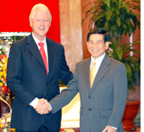 ![]() Chủ tịch nước Nguyễn Minh Triết tiếp cựu Tổng thống Bill Clinton tại Phủ Chủ tịch - Ảnh: TTXVN |