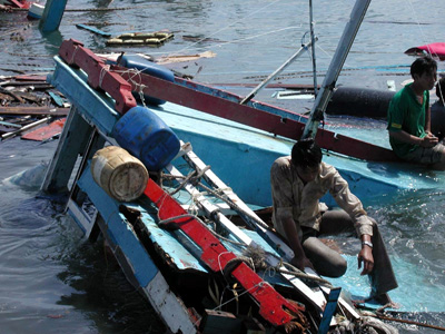 45 phút sau, máy bay đáp xuống huyện đảo. Vừa đặt chân xuống đảo, ông Huỳnh Văn Tí - Bí thư Tỉnh ủy Bình Thuận đã cùng đoàn công tác đến ngay những nơi chịu thiệt hại nặng nề nhất. Hơn 200 chiếc thuyền ở cửa biển Lạch Chùa của xã Tam Thanh bị đánh tan tành theo sóng biển. Ông Lê Phượng - 59 tuổi, một ngư dân và là chủ chiếc tàu mang số hiệu BTH 178 tức tưởi kể: "Bão giật tới cấp 14 thì tàu thuyền nào mà chịu nổi". Anh Hà Sông Lô - Phó bí thư huyện đảo cho biết năm 1988, ở đảo cũng có một cơn bão rất mạnh, nhưng 18 năm sau cơn bão số 9 lại mạnh hơn rất nhiều lần. Tại cảng Phú Quý, bà con ngư dân lặn hụp chằng néo thuyền nhằm cố níu kéo những gì còn có thể cứu vãn được. Nhưng xem ra hy vọng ấy quá mong manh vì sự thật không chiếc tàu nào còn nguyên vẹn. Ông Nguyễn Công - một chủ tàu thu mua lớn ở đảo cho biết: tàu của ông có công suất đến 250 CV, trị giá hơn 500 triệu đồng, mặc dù đã được chằng néo cẩn thận nhưng vẫn không chịu nổi sức gió vào lúc 11 giờ đêm hôm qua. Ông Công cùng những bạn thuyền được thuê cố gắng trục vớt lấy máy tàu.