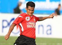 Tiền đạo Phan Thanh Bình trong màu áo ĐT.LA - Ảnh: Bạch Dương |