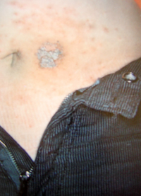 Một trường hợp bị dị ứng bởi nút quần jean. Ảnh: Khánh Vy |