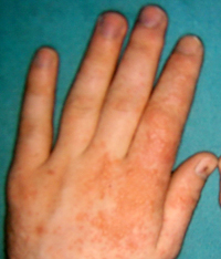 Vùng da tay là nơi rất dễ bị dị ứng với xà bông, chất tẩy rửa. Ảnh: Khánh Vy |