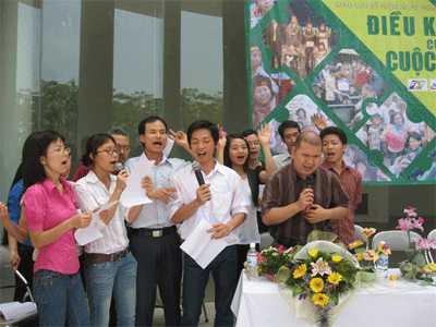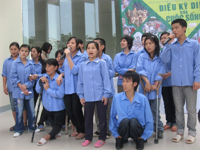 Các thành viên của Trung tâm dạy nghề Quỳnh Hoa góp vui với chương trình.